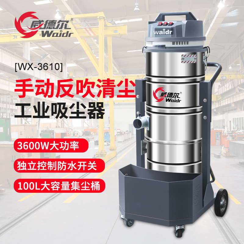 1、吸尘电机: WX-3610系列装置3颗电机,功率可达3600W,吸尘、吸水干湿两用;